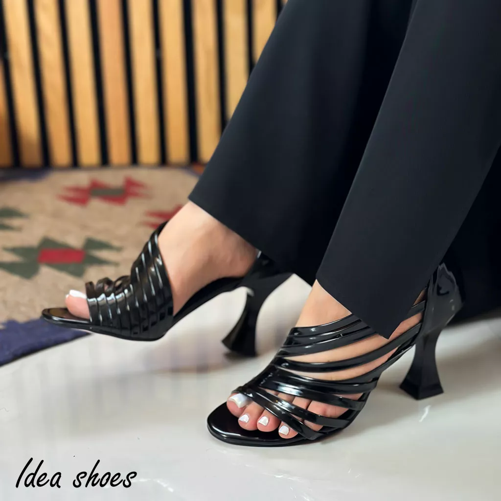 کفش مجلسی مدل هزاربند کد 702 از برند ایده، ترکیبی از زیبایی و راحتی برای مجالس خاص است. این کفش با جنس چرم ورنی مصنوعی و زیره دافوس ساخته شده و قالب استاندارد آن به همراه پاشنه مربعی 7 سانتیمتری، حس شیک و رسمی را منتقل میکند.
